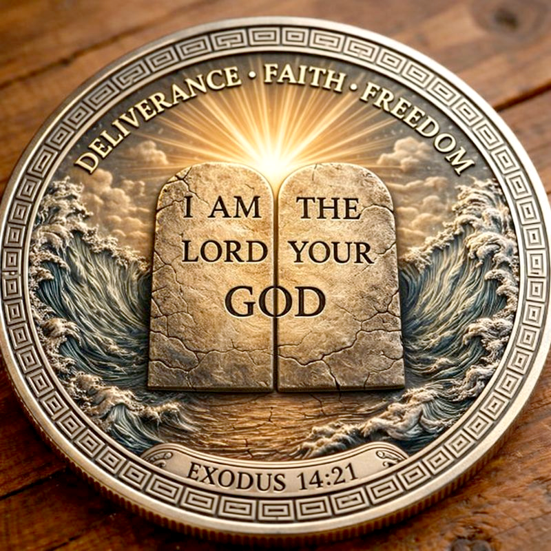 A powerful tribute to one of the most iconic moments in biblical history — Moses parting the Red Sea. This collectible commemorative coin captures the divine authority, faith, and deliverance recorded in Exodus 14:21, transforming sacred scripture into a timeless work of art.