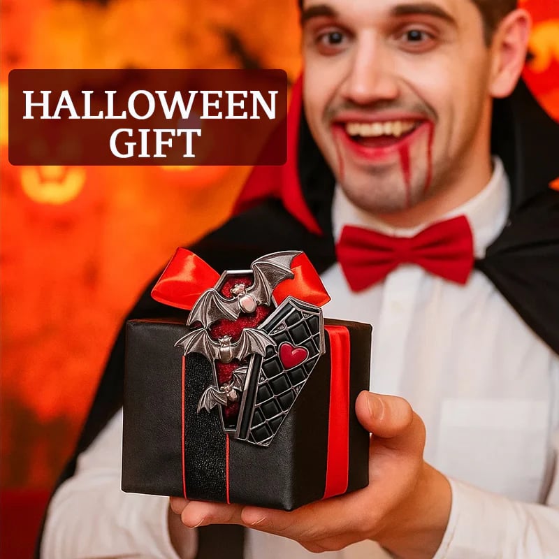 An all-metal miniature coffin shell with an aged finish and openable lid detail. Inside is a magnetized bat skeleton that serves as both a projector and a creepy display, perfect for fans of dark aesthetics.