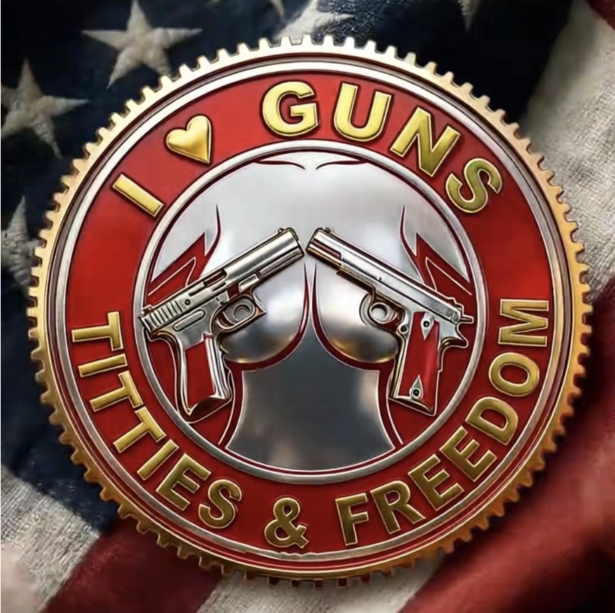The Mighty Freedom Coin is a premium 2-inch metal collectible featuring a full 3D relief eagle, crossed pistols, deep red enamel, and an antique brass finish. Built for patriots, veterans, collectors, and anyone who stands for freedom.